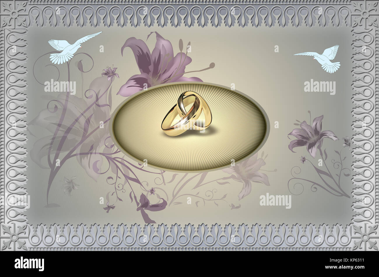 Modele De Carte D Invitation De Mariage Fond Elegant Avec Bordure Decorative Et Anneaux D Or Photo Stock Alamy